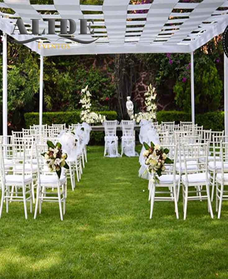 Renta de diversos tipos de sillas Tiffany, Cross Back, Avant Garden.